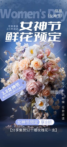 三八妇女节女神节鲜花预定海报
