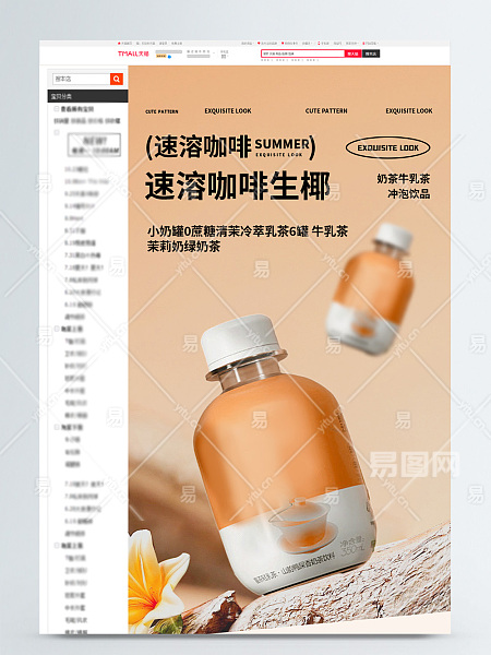 食品茶饮速溶咖啡生椰拿铁详情页模板