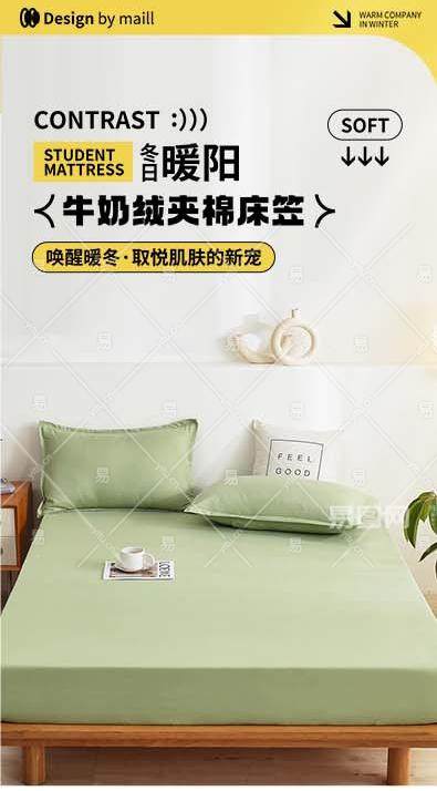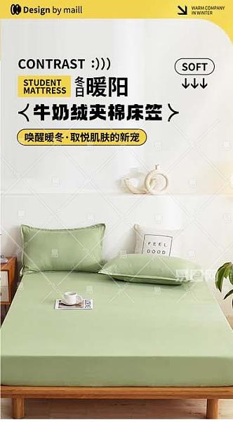 酸性创意牛奶绒夹棉床笠抖音拼多多详情页设计海报