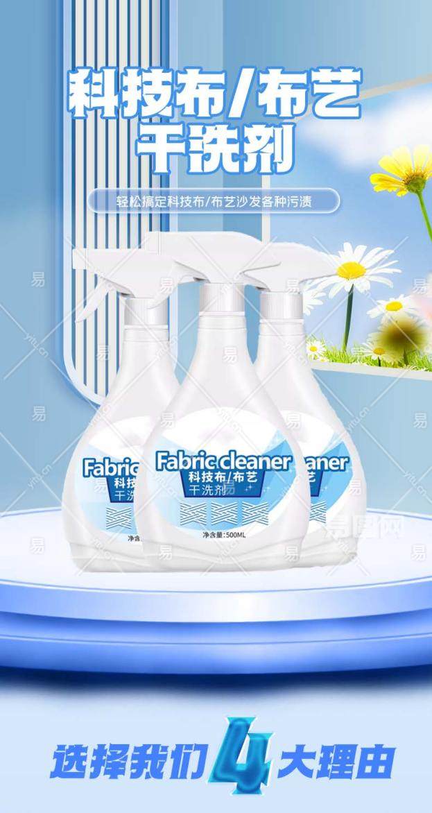 蓝色质感布艺沙发清洗剂详情页描述设计模板
