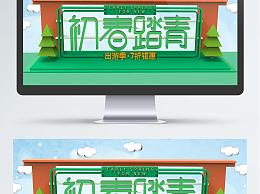 绿色春天初春踏青促销banner