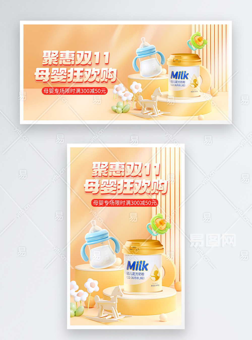 当前的位置:首页 > 广告设计 > 电商海报 > 母婴玩具 > 双十一母婴专场促销电商海报