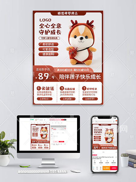 当前的位置:首页 > 广告设计 > 电商海报 > 母婴玩具 > 母婴卡通毛绒玩具电商主图