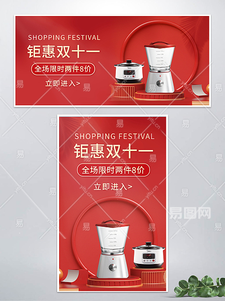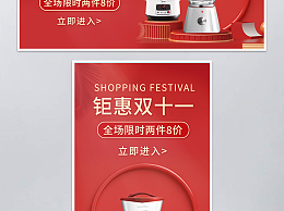 红色背景简约风格双十一数码家电海报banner双十一数码家电banner