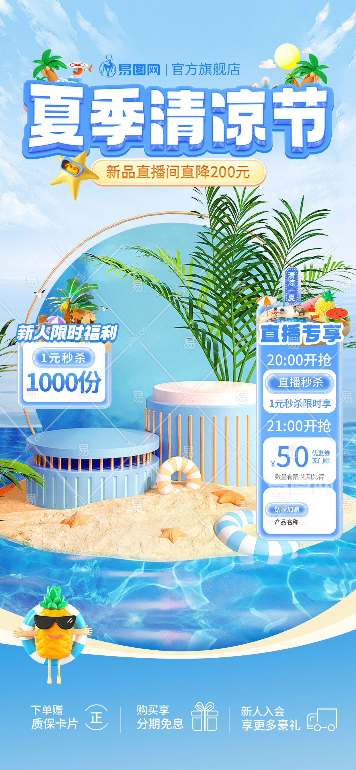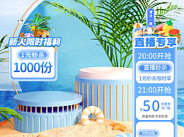 蓝色狂暑季清凉节数码家电展台直播背景套图