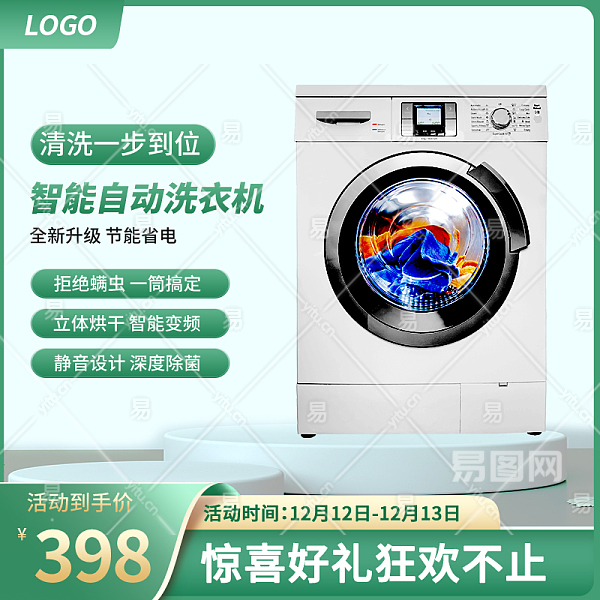 绿色智能自动清洗机器洗衣机省电电商淘宝主图直通车