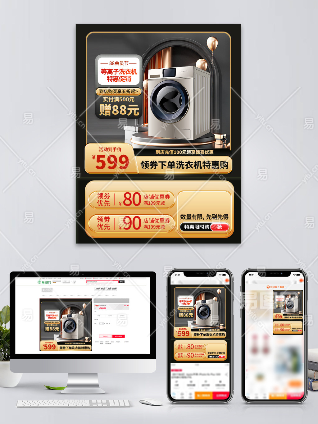 电商洗衣机家电标签88会员节主图直通车