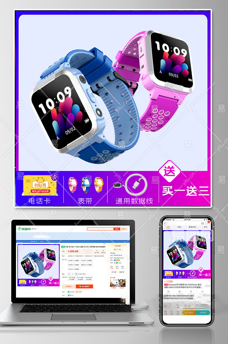 当前的位置:首页 > 广告设计 > 电商海报 > 手表眼镜 > 电商渐变色日常通用版儿童手表主图