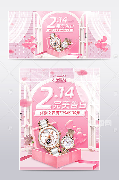 当前的位置:首页 > 广告设计 > 电商海报 > 手表眼镜 > 214情人节粉色清新风手表活动海报模板
