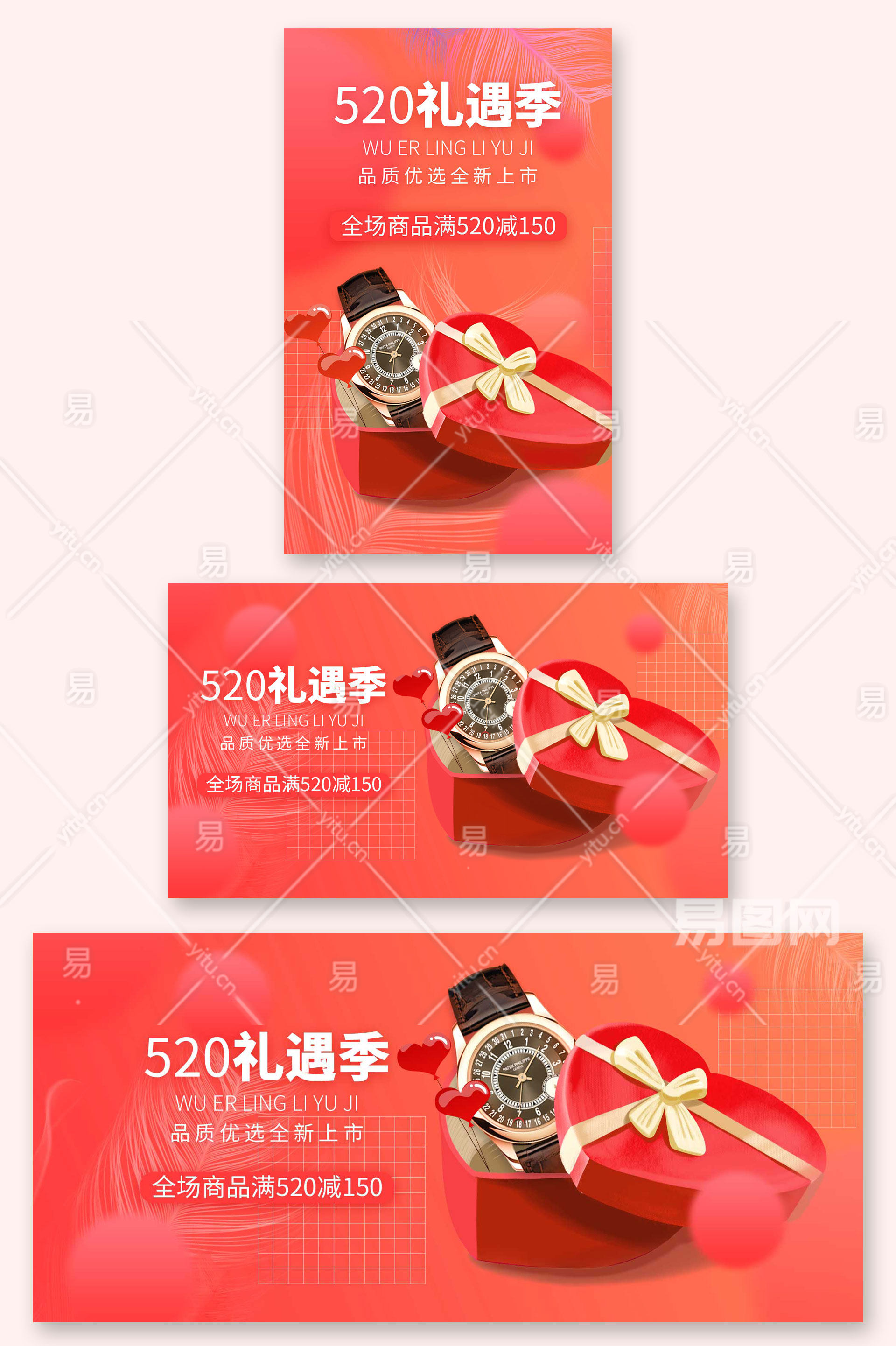 当前的位置:首页 > 广告设计 > 电商海报 > 手表眼镜 > 520礼遇季红色爱心礼盒手表礼物百货海报