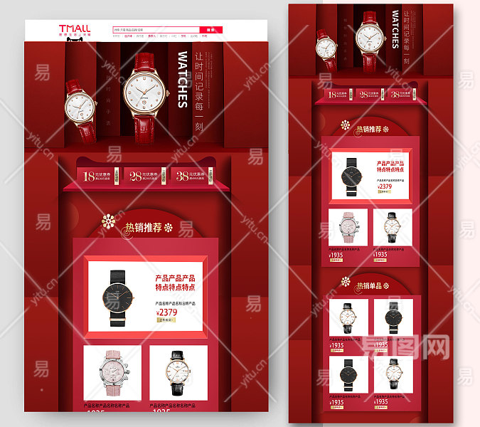红色喜庆手表首页设计模板