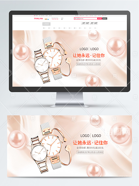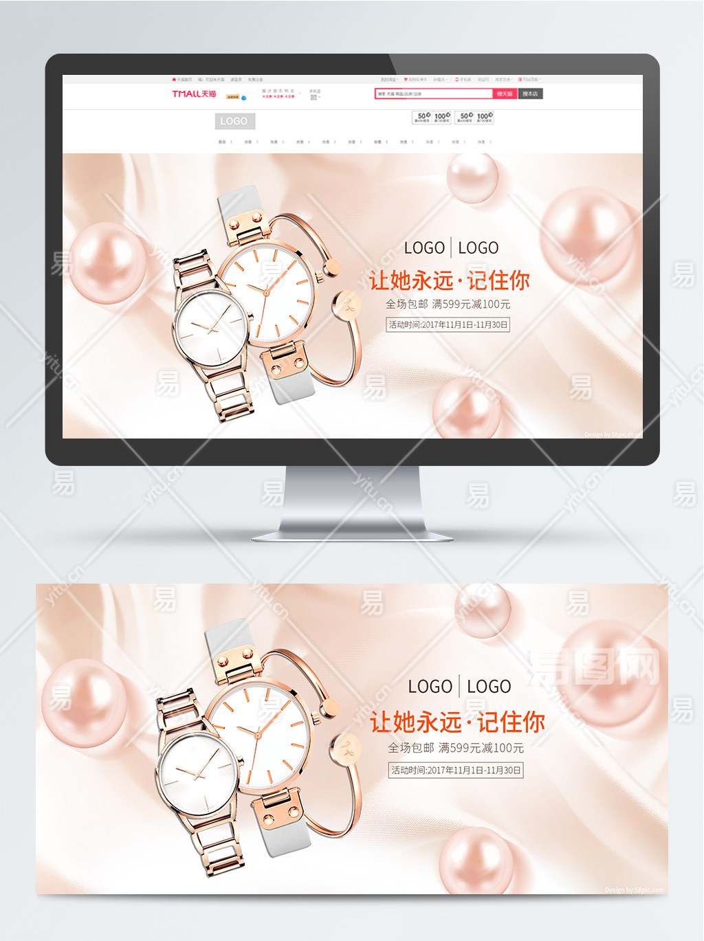 当前的位置:首页 > 广告设计 > 电商海报 > 手表眼镜 > 粉色大气天猫电商珍珠手表促销banner