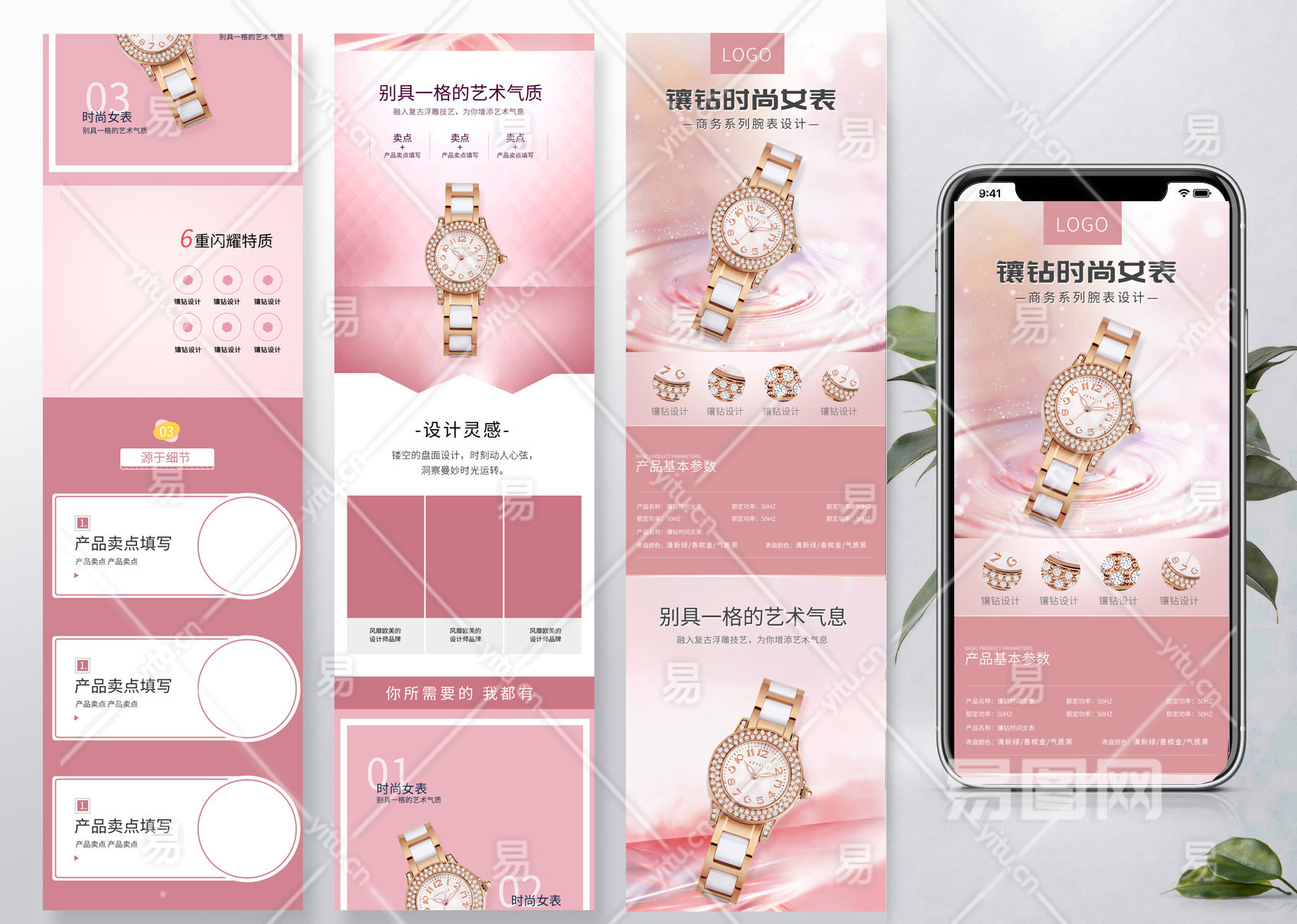 淘宝天猫粉色唯美风格女士腕表详情页