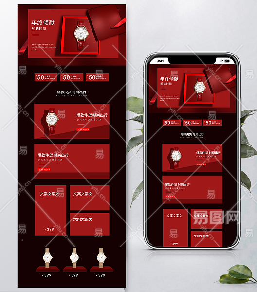 当前的位置:首页 > 广告设计 > 电商海报 > 手表眼镜 > 红色时尚简约手表首页