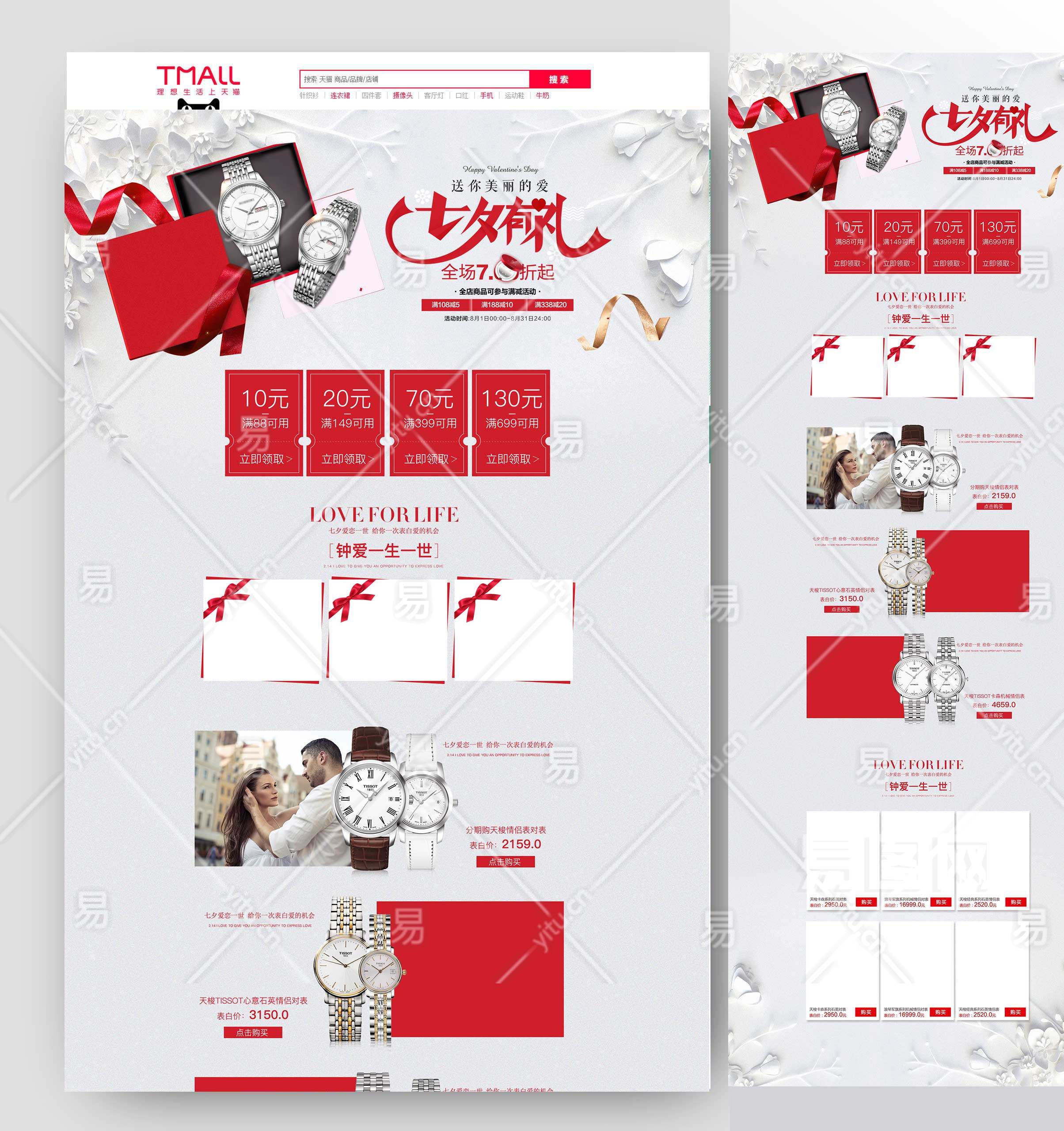 当前的位置:首页 > 广告设计 > 电商海报 > 手表眼镜 > 电商淘宝七夕情人节手表店铺装修首页psd