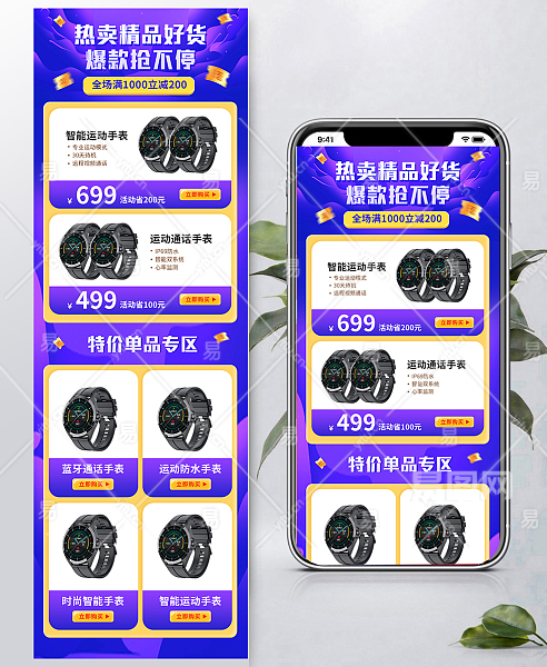 当前的位置:首页 > 广告设计 > 电商海报 > 手表眼镜 > 蓝色简约智能手表TOP热卖榜单关联营销模块