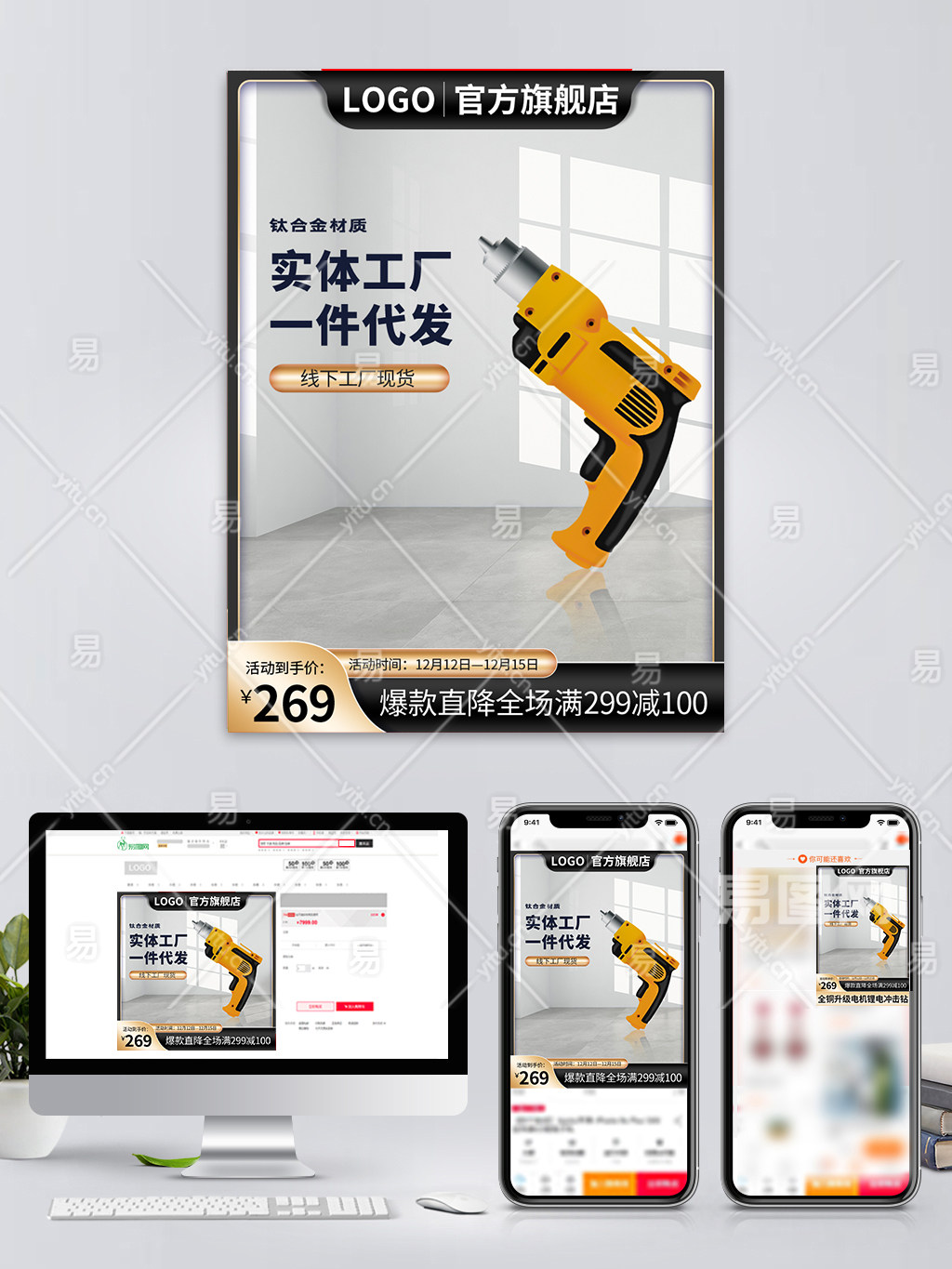 淘宝天猫促销电商黑金主图五金机械电器电钻通用直通车