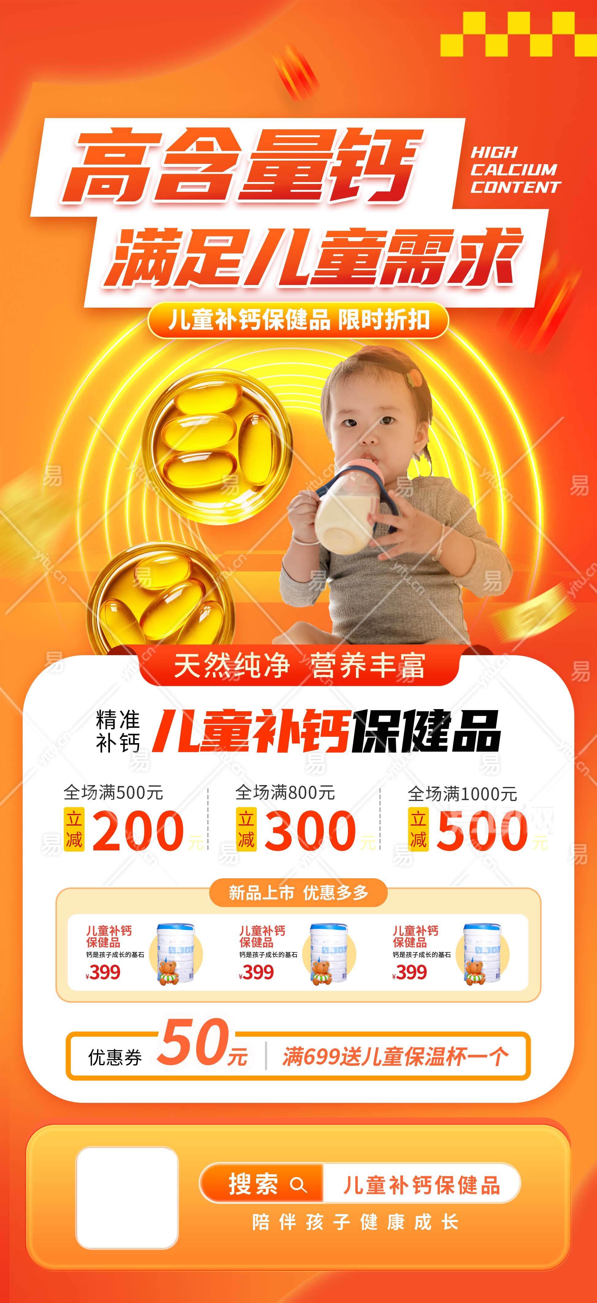 高含量钙电商关联营销海报