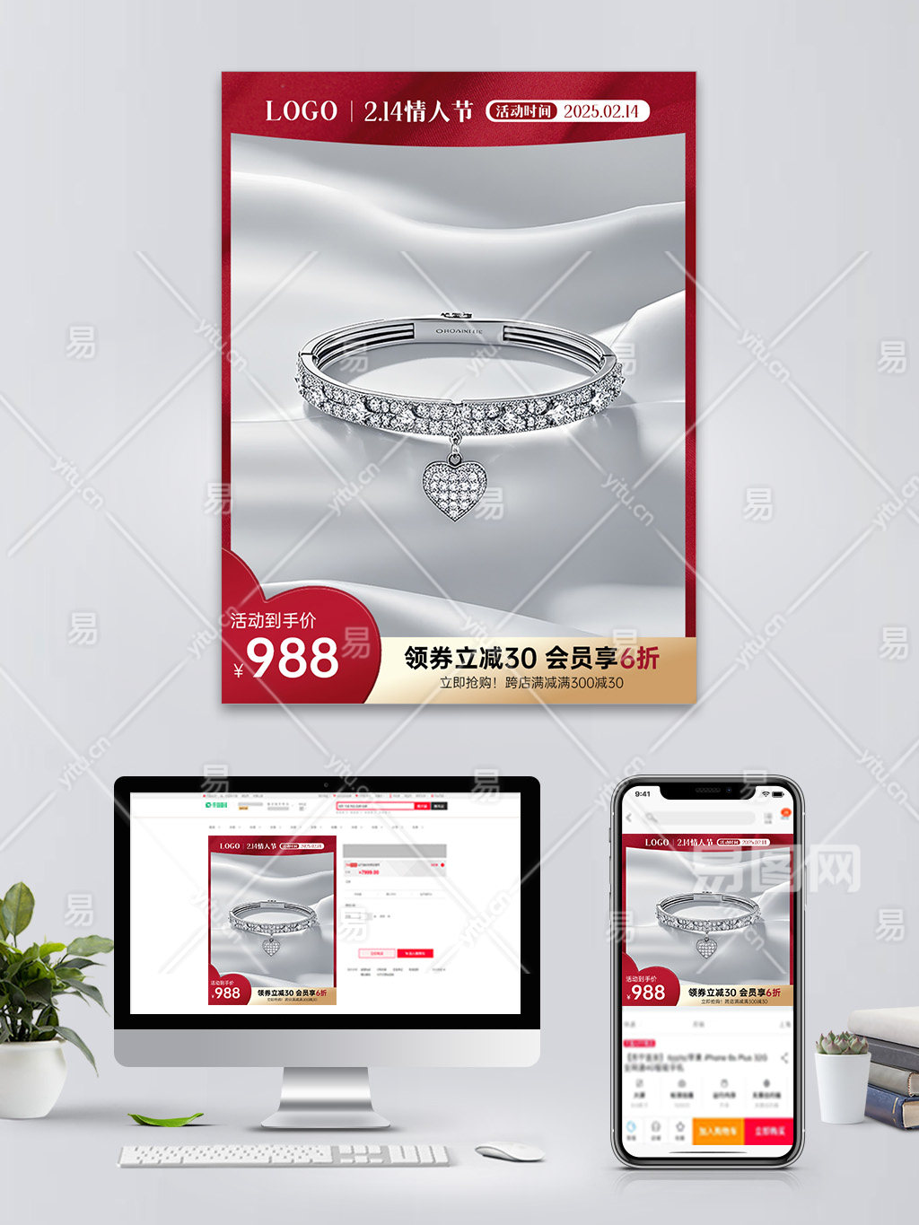 当前的位置:首页 > 广告设计 > 电商海报 > 珠宝饰品 > 情人节爱心红色电商主图