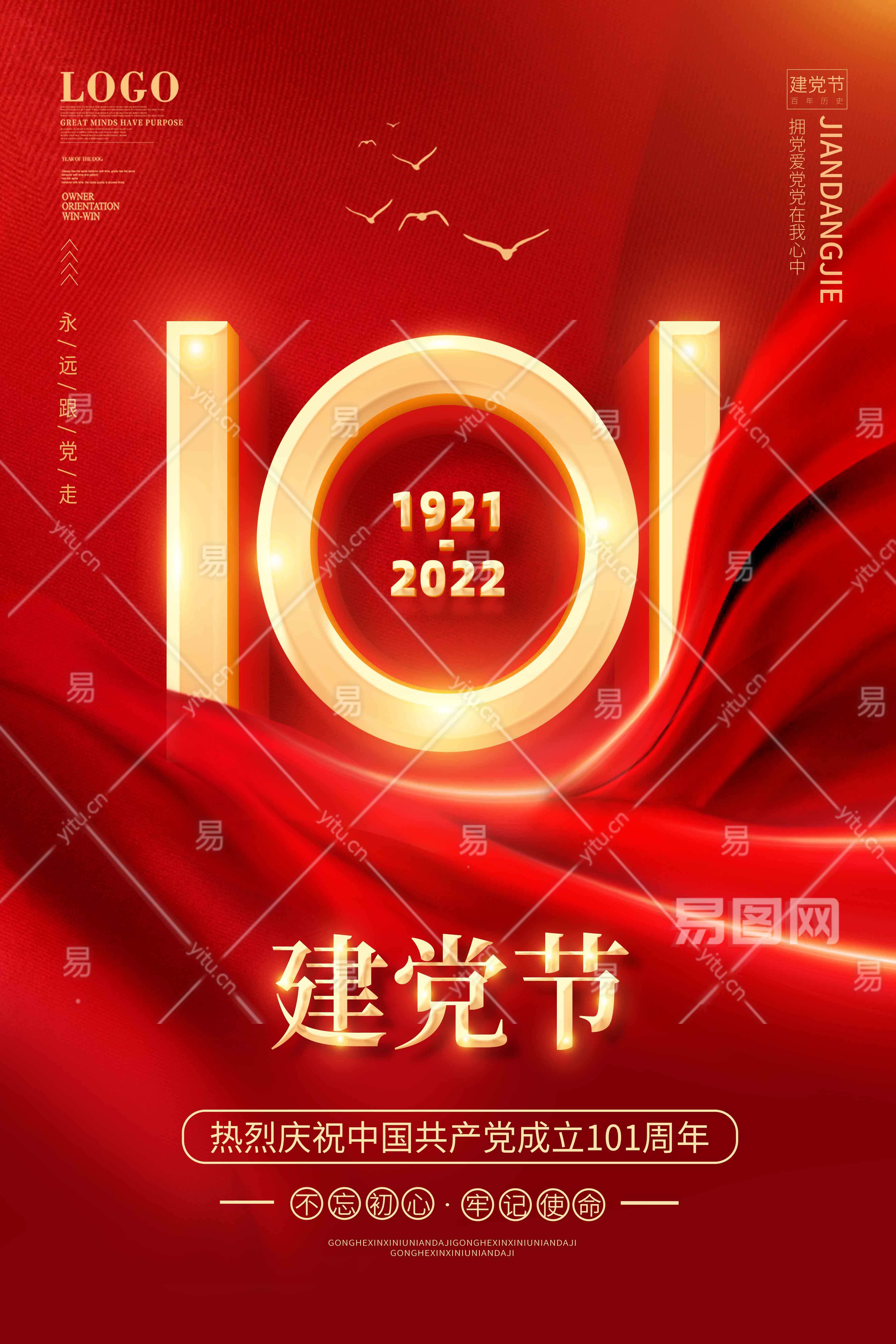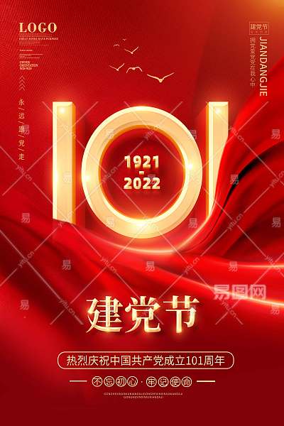 红色七一建党节建党101周年71建党节海报党建党政七一建党节党建100周年