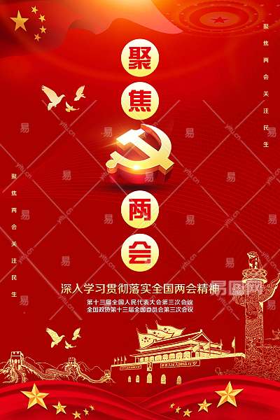 红色党建党课党政聚焦全国两会宣传海报两会党建党课党政