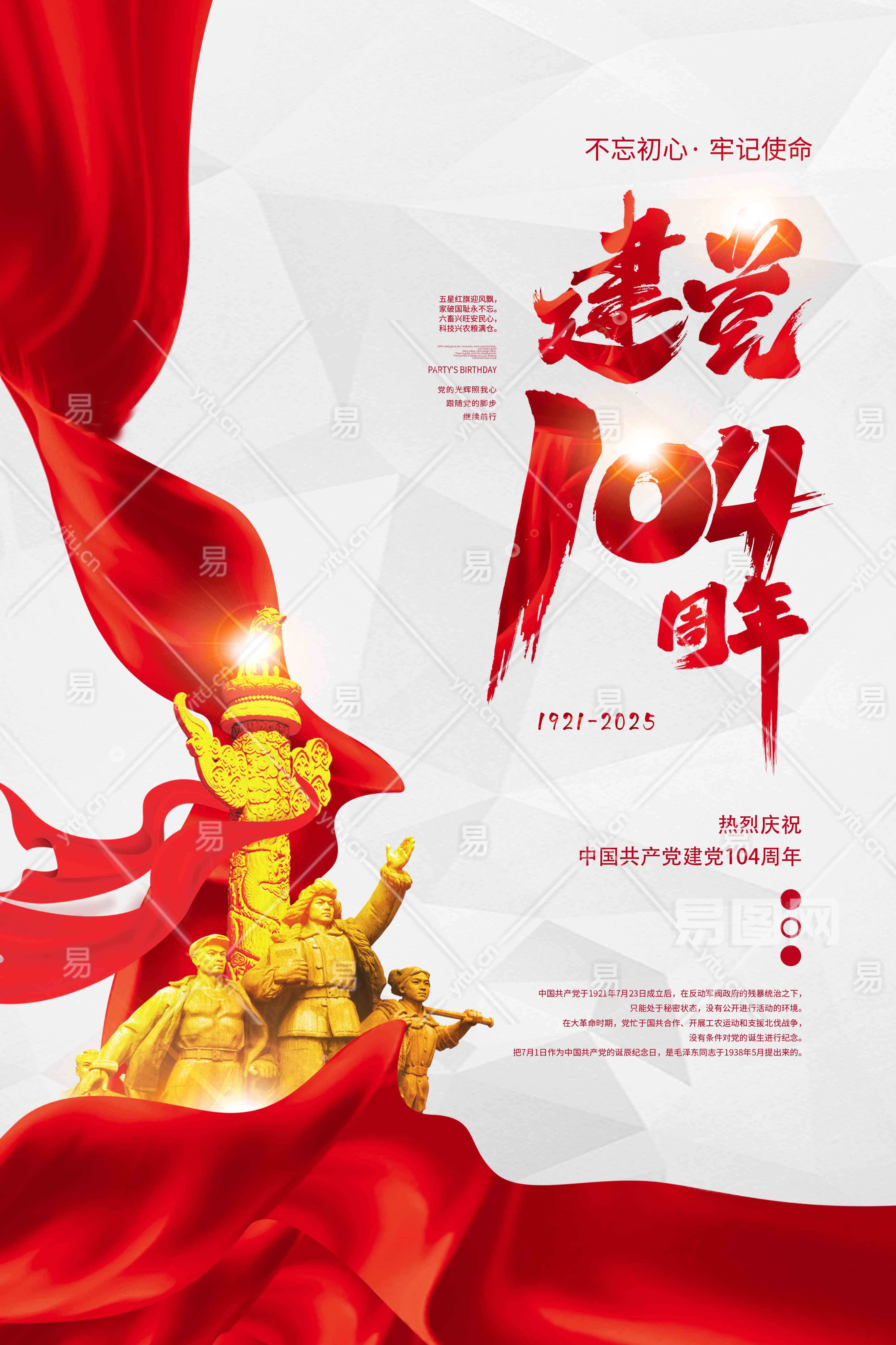 热烈庆祝中国共产党建党104周年党政党建党课党史海报