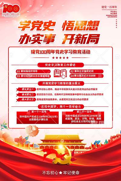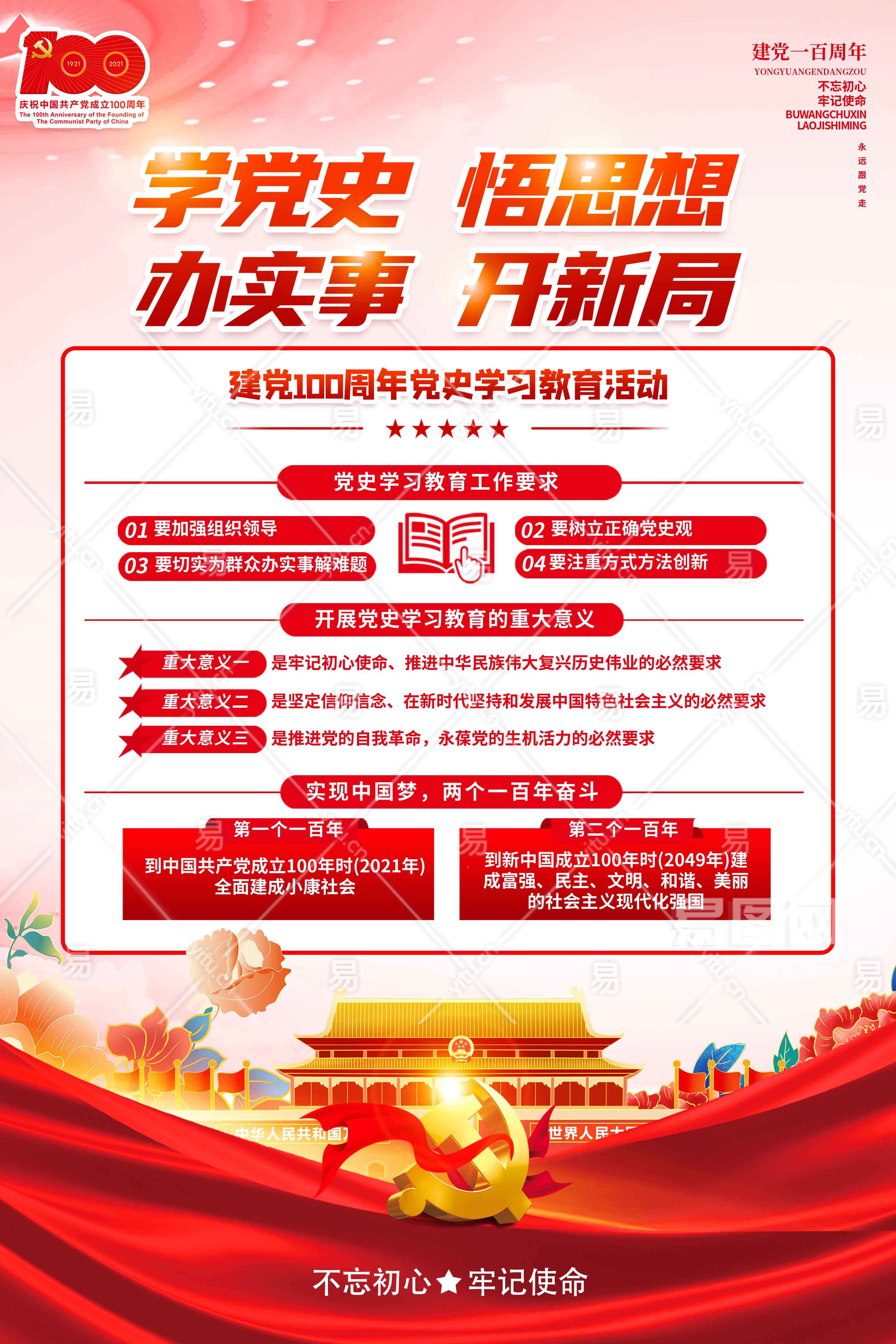 百年党史学习教育党动员大会海报党建海报