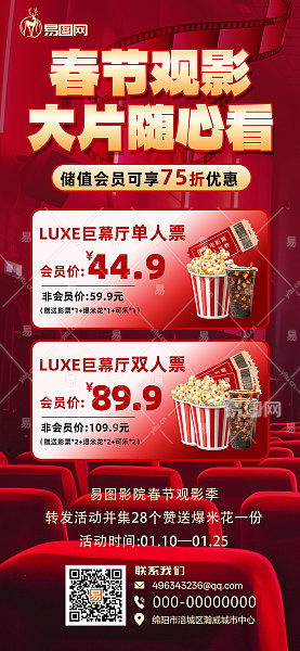 当前的位置:首页 > 广告设计 > 海报 > 电影海报 > 春节电影电影院红色简约海报平面海报设计