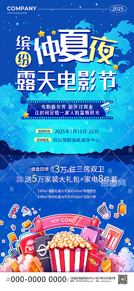 当前的位置:首页 > 广告设计 > 海报 > 电影海报 > 蓝色插画风夏季缤纷仲夏夜电影活动手机文案海报夏天活动促销