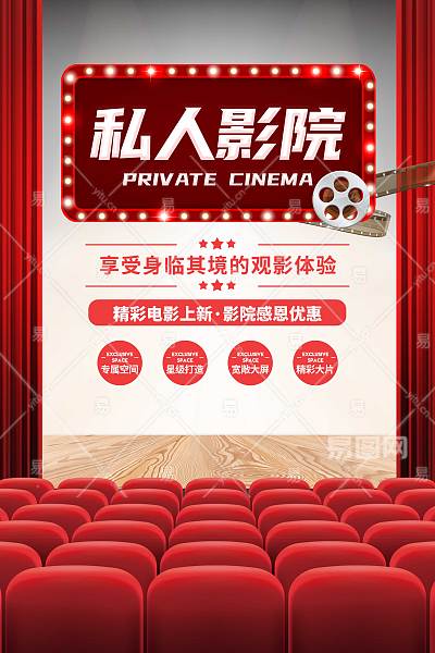 红色自主创意灵感私人电影院宣传海报