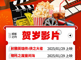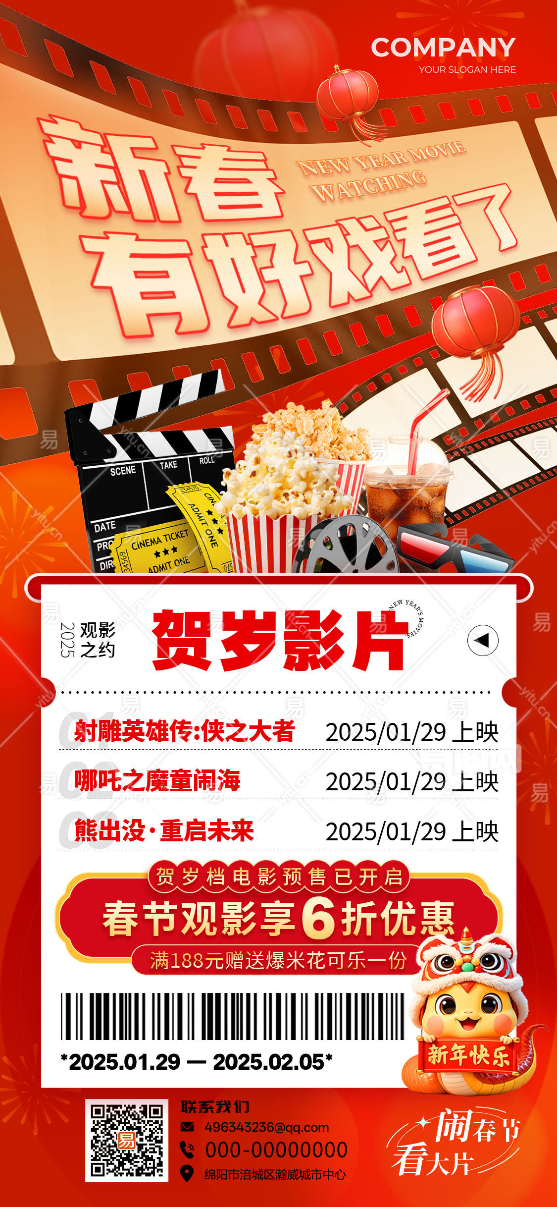 红色喜庆2025蛇年新年春节观影影院活动促销海报新春电影