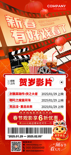 当前的位置:首页 > 广告设计 > 海报 > 电影海报 > 红色喜庆2025蛇年新年春节观影影院活动促销海报新春电影