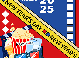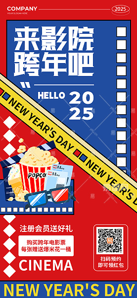 红蓝色简约风2024来影院跨年吧促销活动手机文案UI海报2024跨年