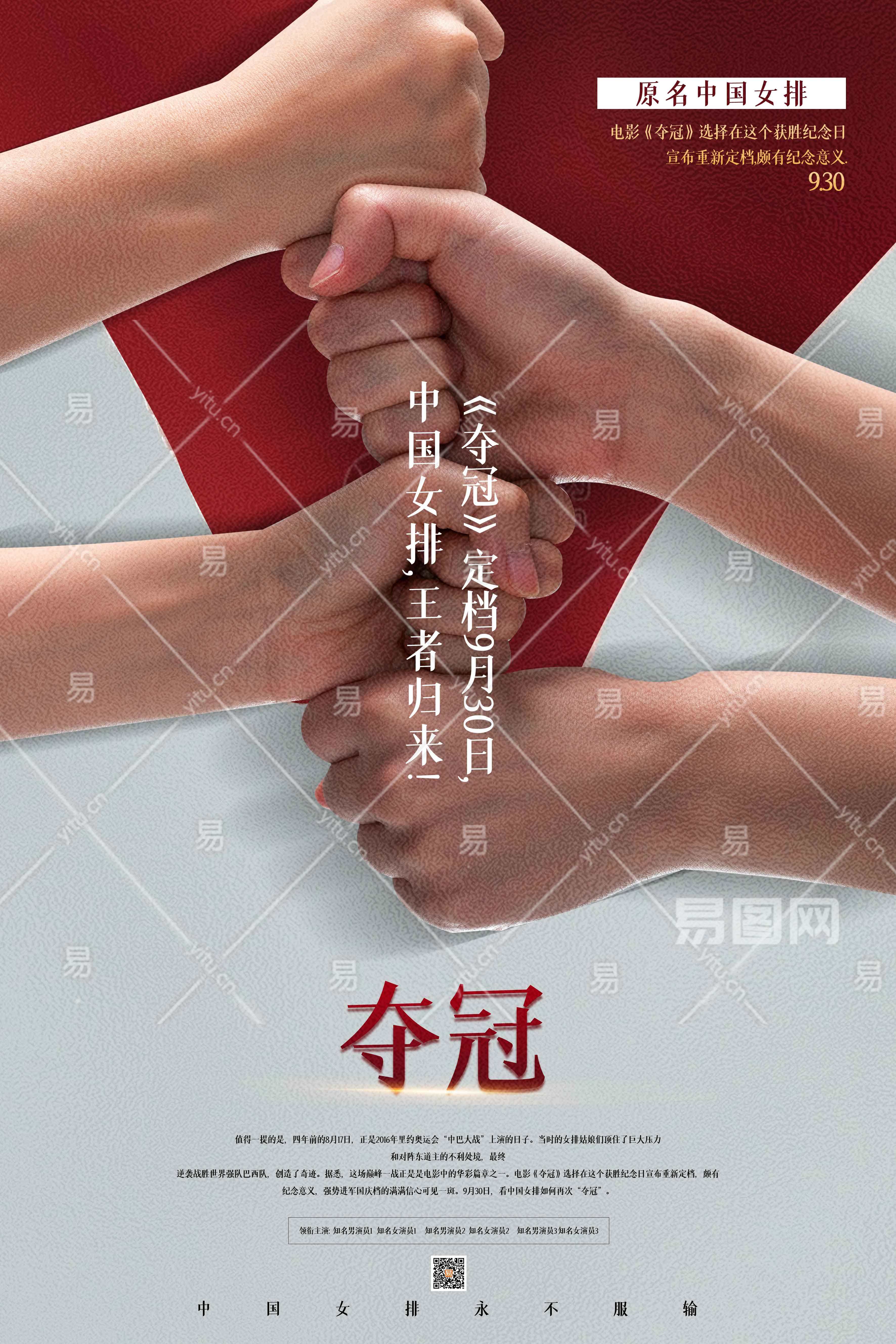 红色白色撞色大气夺冠中国女排电影宣传海报