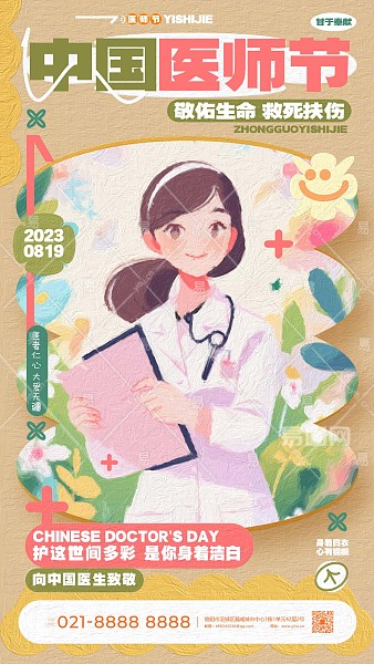 中国医师节绘画海报