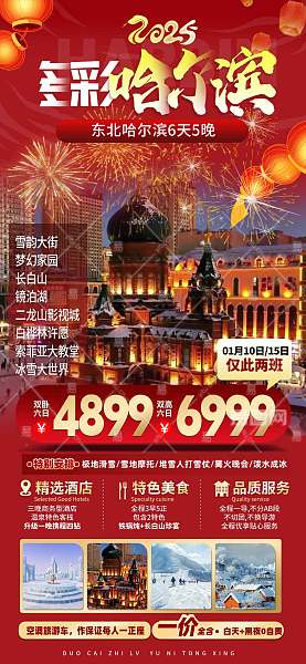 春节旅游哈尔滨旅游红色简约海报ps海报制作