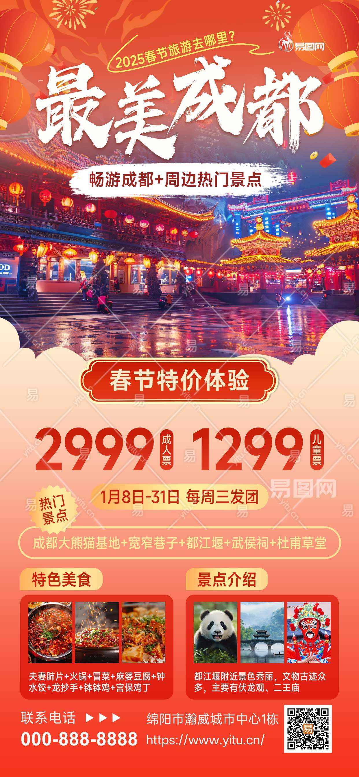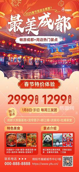 当前的位置:首页 > 广告设计 > 海报 > 旅游海报 > 春节旅游四川成都红色简约喜庆海报宣传海报