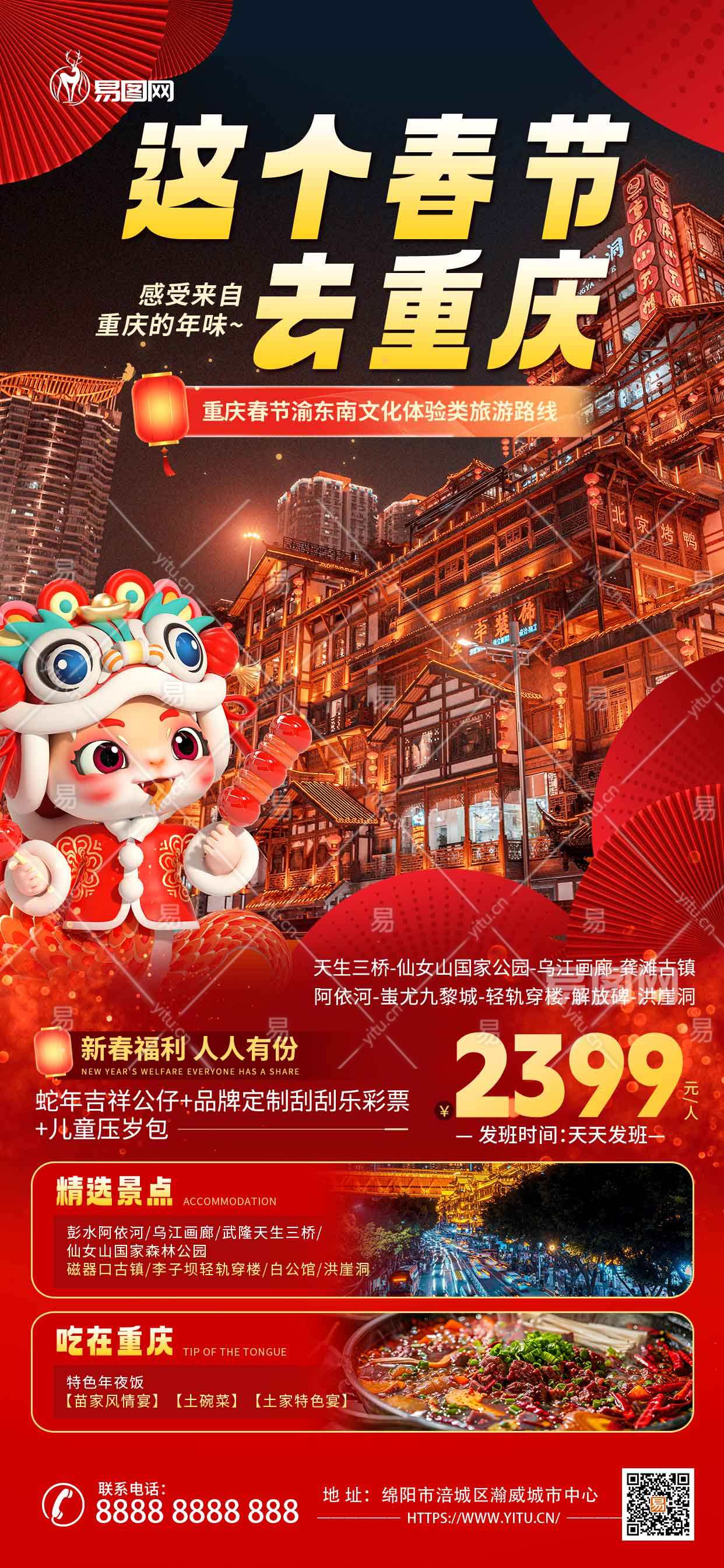 春节旅游重庆旅行红色喜庆海报海报设计图