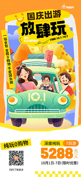 当前的位置:首页 > 广告设计 > 海报 > 旅游海报 > 国庆出游旅行社优惠促销宣传节日海报