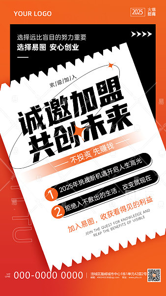 橙红色大气创意风格招商手机文案海报