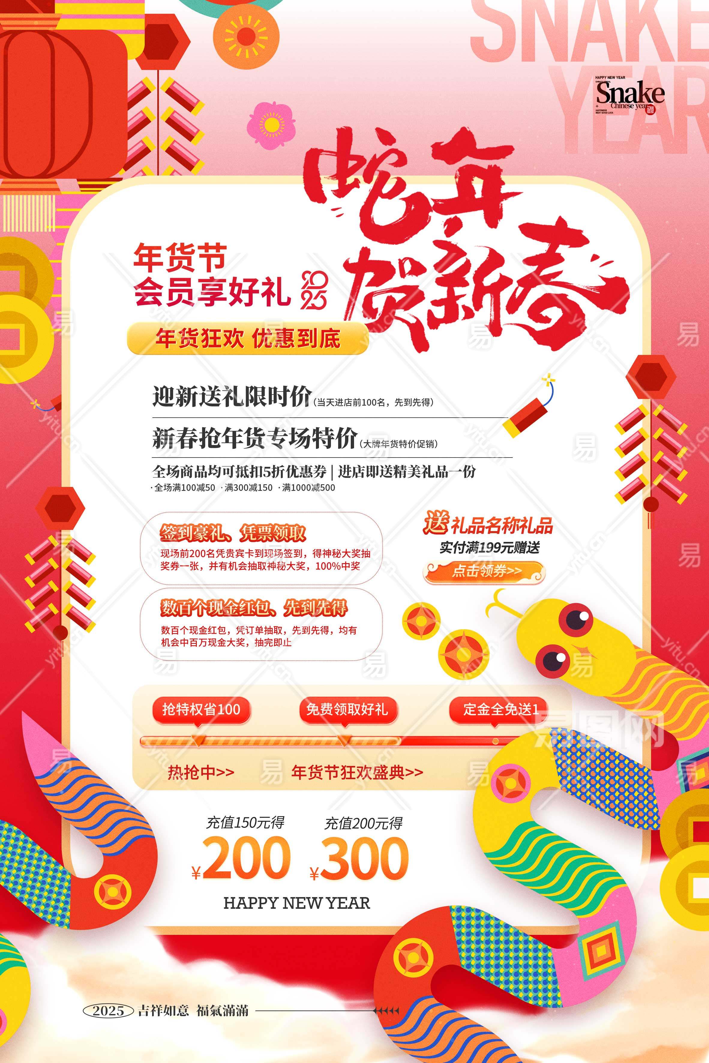 春节2025蛇年新年节日海报