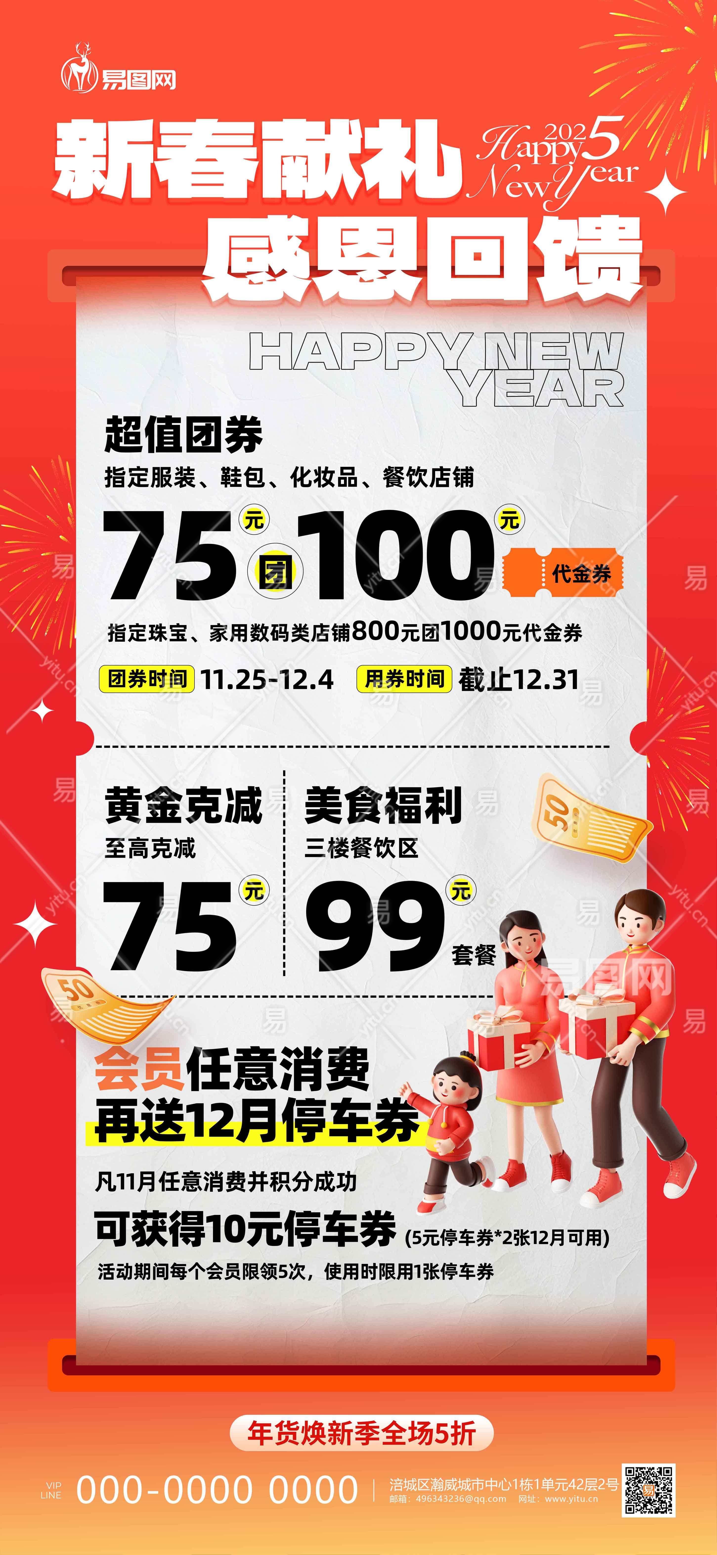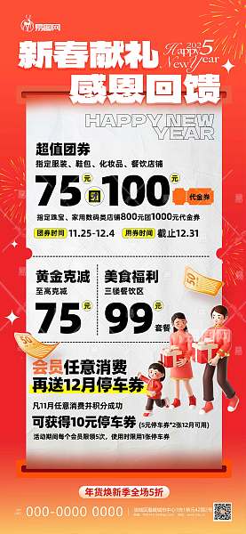 红色新春献礼感恩回馈春节商场促销营销海报