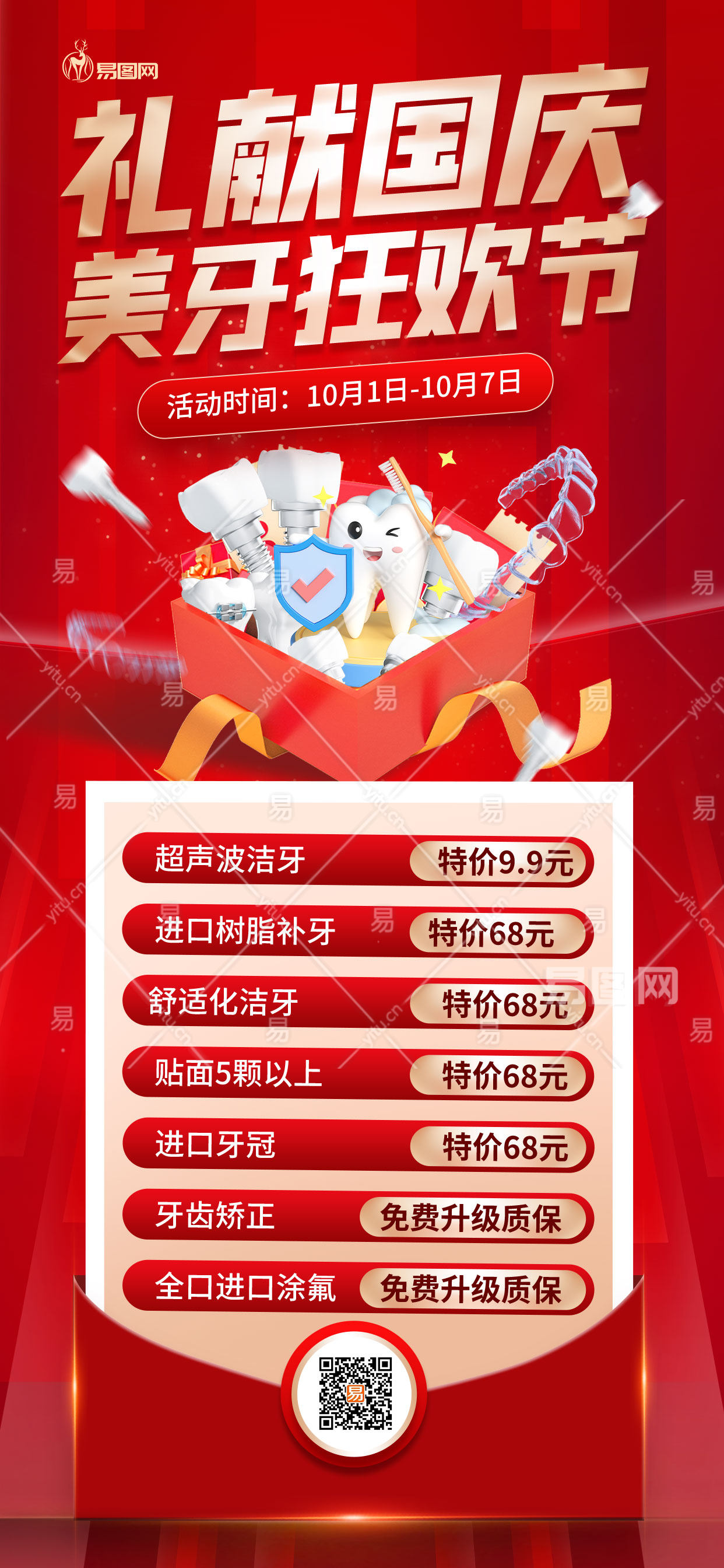 简约红色喜庆国庆口腔促销活动宣传海报