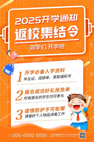 当前的位置:首页 > 广告设计 > 海报 > 商业海报 > 开学通知海报开学季返校集结令橙色背景