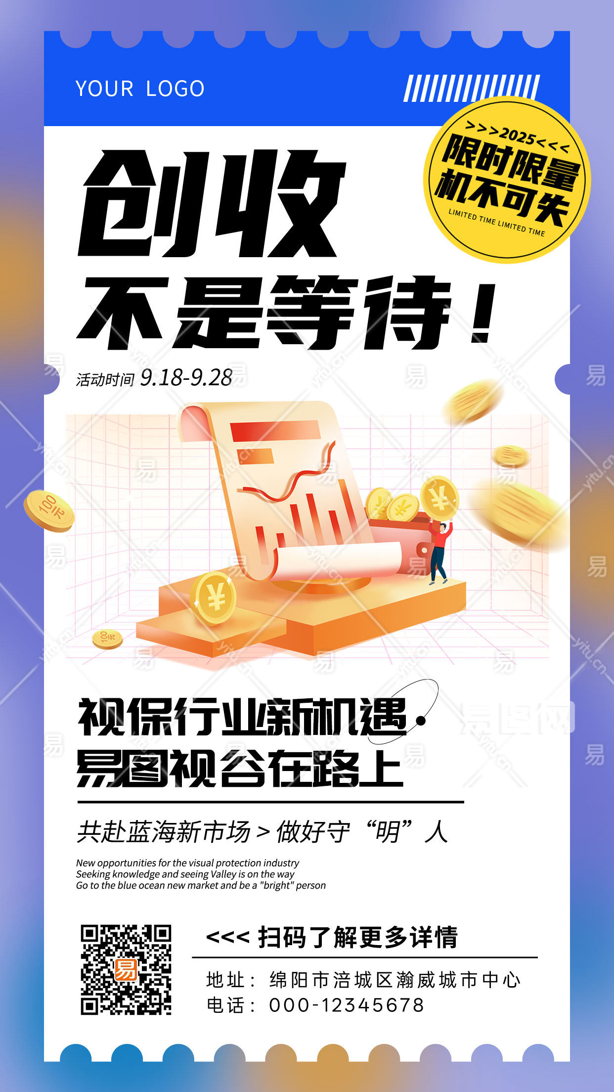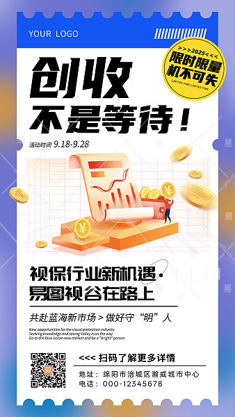 当前的位置:首页 > 广告设计 > 海报 > 商业海报 > 蓝黑黄简约C4D创收不是等待招商手机文案海报