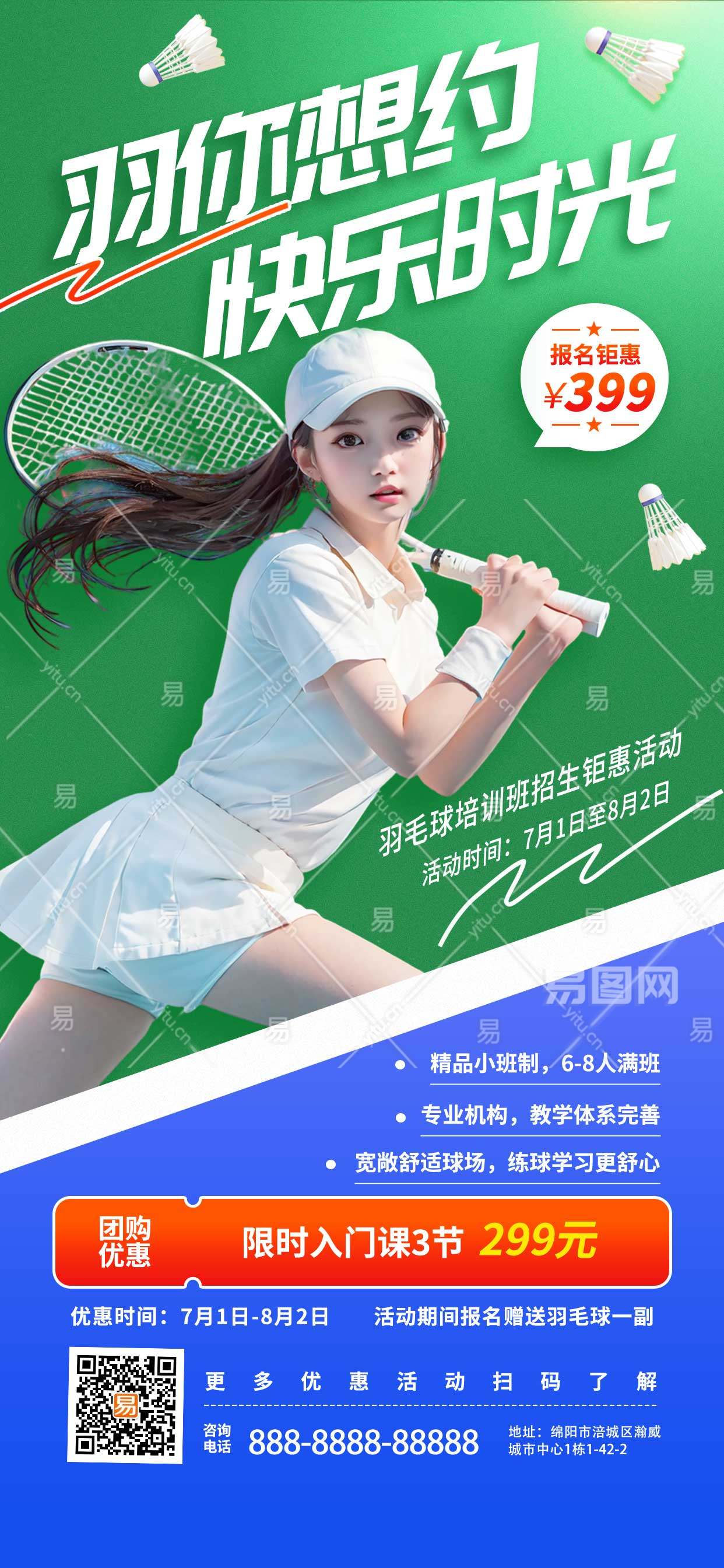 学生成人羽毛球运动体育班培训暑期班健身锻炼招生宣传海报