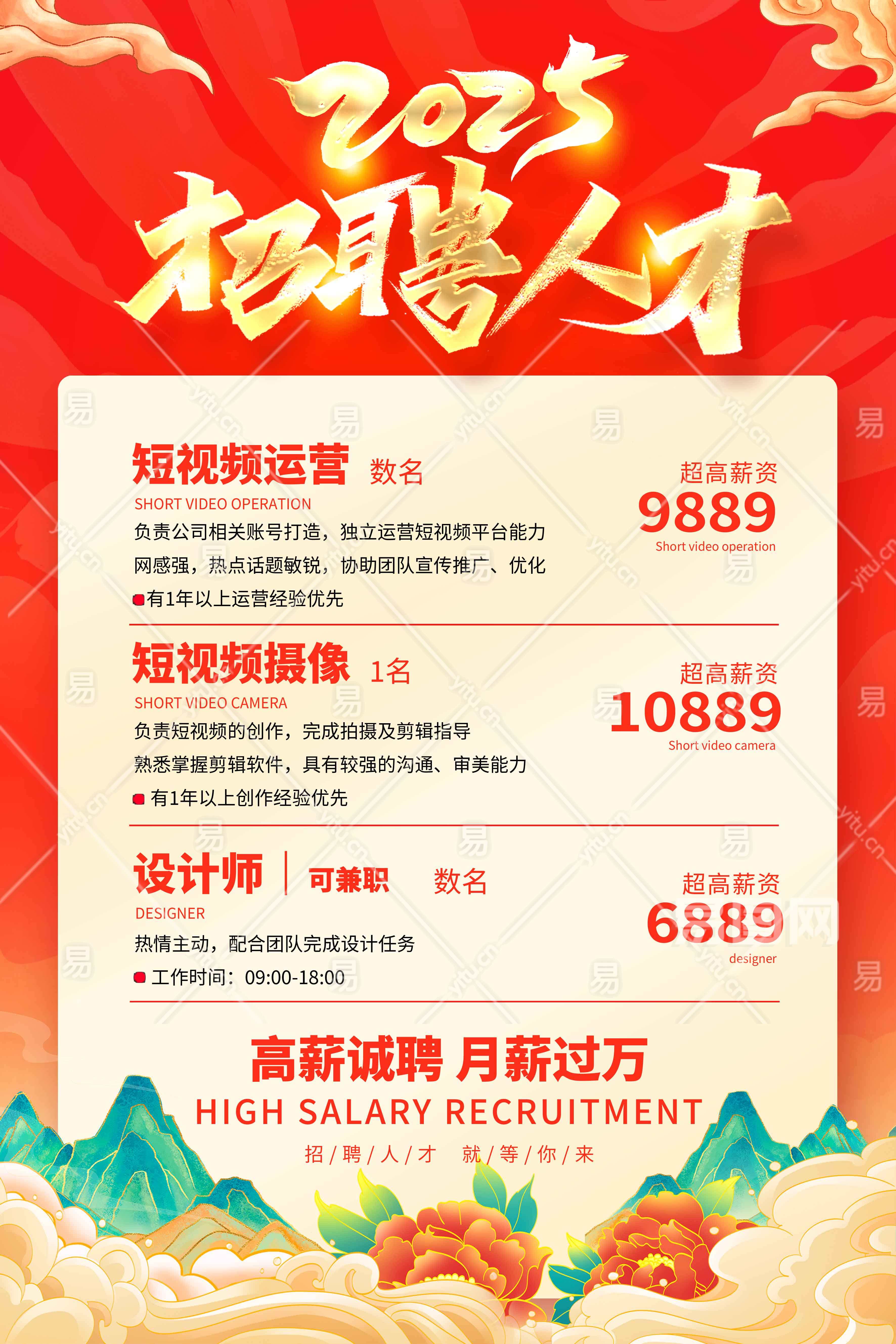 关键词: 红色喜庆2025招聘海报设计2025蛇年新年招聘海报2025蛇年新年招聘文案海报设计素材_素材中国_素材网_图片素材_PSD素材-素材库 素材库,易图素材网_红色喜庆2025招聘海报设计2025蛇年新年招聘海报2025蛇年新年招聘文案海报免费素材共享平台.图片素材图库提供海量素材,图片下载,设计素材,PSD源文件,矢量图,AI,CDR,EPS,广告设计素材、VI设计素材、电商模板素材网和高清图片下载网站,提供海量的招聘海报模板素材、VI设计素材、名片设计素材、LOGO素材、网页设计模板等PS素材和高清图片下载,为设计行业优质的中国素材网站 特别说明:本站所有资源仅供学习与参考,请勿用于商业用途,如有侵犯您的版权,请及时发邮件联系我们(496343236@qq.com),我们将尽快处理。