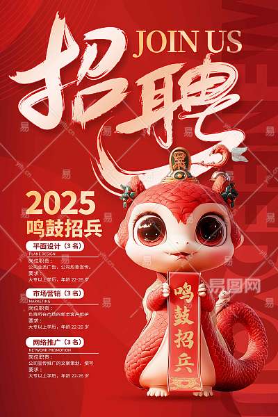 当前的位置:首页 > 广告设计 > 海报 > 招聘海报 > 2025蛇年新年红色招聘海报宣传