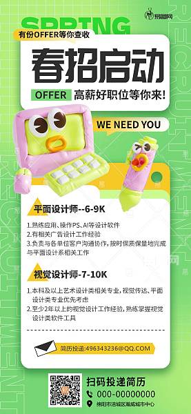 春季招聘春招绿色膨胀风海报宣传海报模板