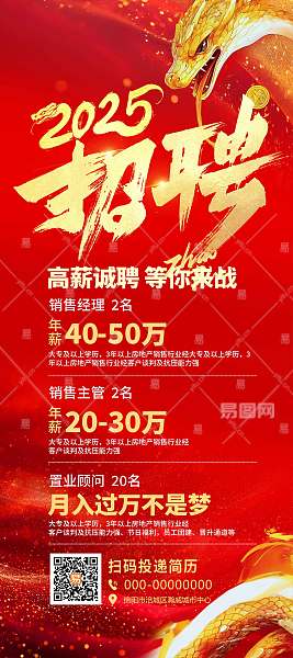 当前的位置:首页 > 广告设计 > 海报 > 招聘海报 > 红色喜庆2025招聘展架设计2025蛇年新年招聘展架